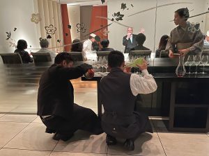 5種類目、6種類目のワインは、同時に提供して、サイドバイサイドでDomaine de la Romanée-Contiの世界観をみていただきました。2019 Domaine de la Romanée-Conti Échézeaux Grand Cru & 2019 Domaine de la Romanée-Conti Richebourg。エシェゾーは若樹由来の繊細で妖艶な果実香、赤系果実とシルクのようななめらかな口当たりを、リシュブールは黒果実とスパイスの長い余韻・そして力強く肉感的な構造を備えています。この偉大なワインに合わせた鮨・つまみは何か。気になる方はぜひ、日本料理・風花にお越しいただき、直接鮨職人に、もしくはソムリエチームのメンバーに聞いてみてください。(勿体ぶってすみません)ギヨームさんはフランスの方ですが、日本語がとても上手で、非常に分かりやすく、そして笑いを交えてファインワインを紹介してくださる唯一無二のナビゲーターです。2026年も必ずコンラッド東京でイベントを開催してほしいと堅く約束を取り付けました。
