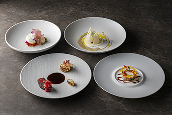 フレンチをベースにさまざまな国の技法を取り入れた新スタイルのモダンフレンチ「コラージュ」のシグネチャーコース「Authentic(オーセンティック)」は、旬のブランド食材を活かしシェフの技が詰まった芸術的で美しい8コースです。同コースのエッセンスを凝縮した5コースのショートバージョンもご用意しています。
