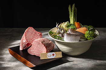 滋賀県をテーマにした初夏の鉄板焼コースでは、ほんのり甘く、上品な味わいのビワマスに、山椒味噌を添えてお出しする稚鮎など琵琶湖産にこだわった旬の食材をご用意。 メインは、日本三大和牛に数えられる近江牛。 赤身が美しく、ちょうど良いサシ具合。 その甘みと旨み、柔らかさは格別です。 また、夏に向かって旨みを増す名古屋コーチンの親子丼、クルマエビや春子鯛(真鯛の稚魚)といった旬の恵みを散りばめた海鮮ばらちらしなど、日本料理「風花」ではこの季節ならではの日本のおいしさを彩り豊かに取り揃えています。