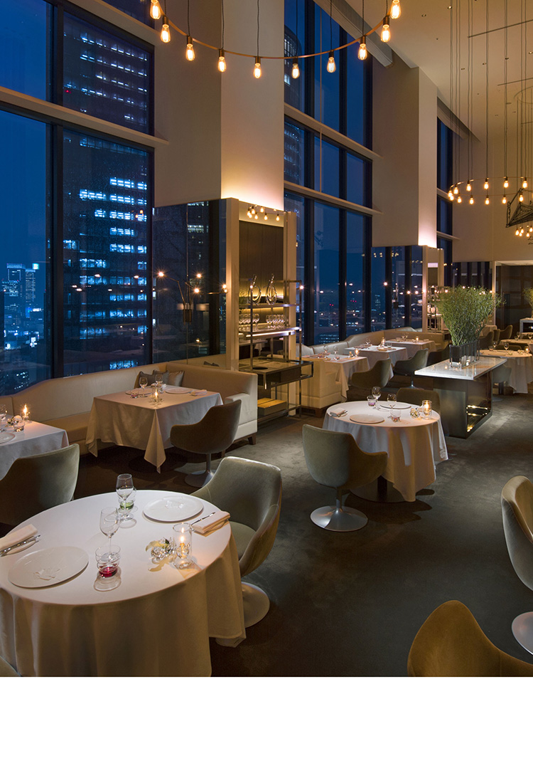 フレンチをベースにさまざまな国の技法を取り入れた新スタイルのモダンフレンチ「コラージュ」では、記念日限定6コースに、スパークリングワインやケーキ、シェフのスペシャリテからオプションを選べる特別なプランをご用意しました。高さ7mの窓から望む汐留のダイナミックな景色と、開放的なキッチン、モダンな内装が見事に調和した空間で、クリエイティブで芸術的な料理が特別なディナータイムを一層華やかに演出します。