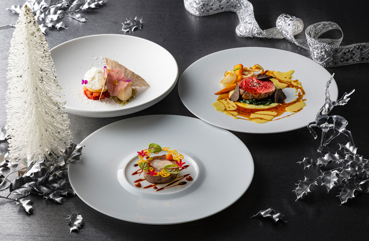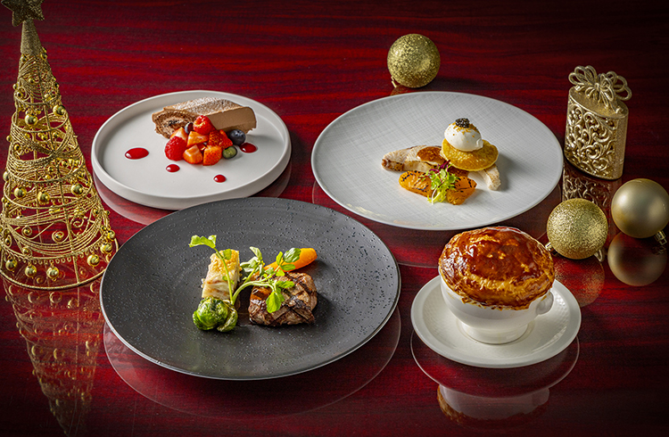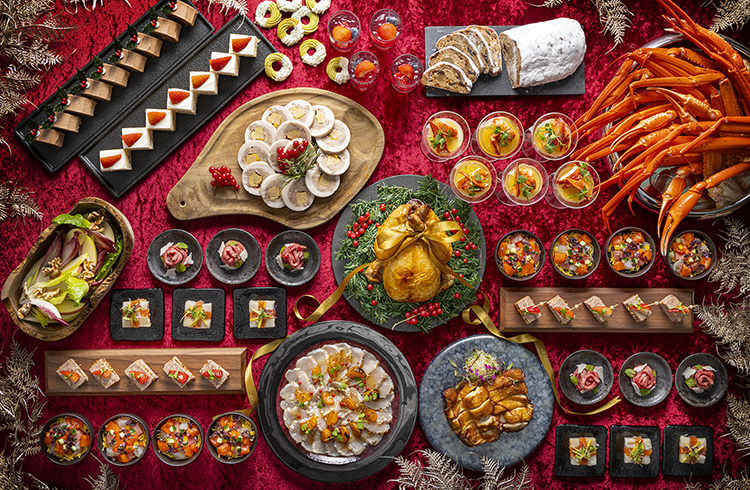 The Festive Lunch Buffet features Festive-themed dishes such as domestic roast beef, turkey & foie gras chicken roll, along with art-like cold dishes and colorful seafood bowls among 8 different appetizer buffets. In addition, enjoy unlimited snow crab at the crab station, and a dessert. On December 24 and 25 only, we also offer a special dinner version at Cerise — selecting from festive lunch buffet items and a main dish reworked into a festive dinner style.