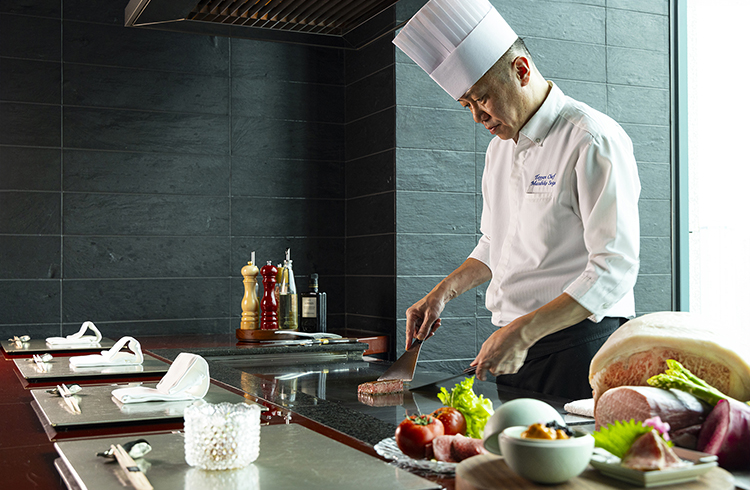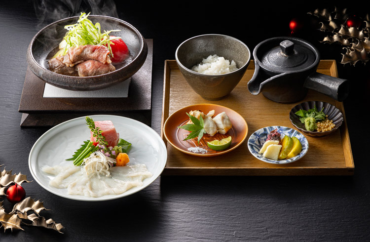 At Kazahana, which serves Japanese cuisine with seasonal flavors and depth, two types of limited courses are available via kaiseki or the teppan counter.