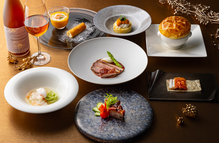 At China Blue, a refined Cantonese base cuisine, we offer a festive dinner that fuses Chinese and French styles, including menus from our past collaboration dinner with French restaurant Florilège in celebration of the hotel’s 20th anniversary.