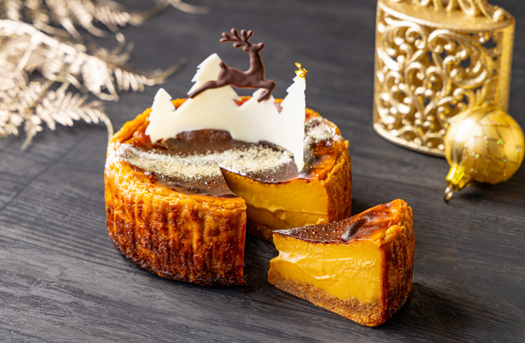 キャラメルのようなほろ苦く深い風味を特徴とするノルウェー産ブラウンチーズを使用したバスクチーズケーキ。表面にこんがり焼き目をつけ、香ばしさと、とろけるような口当たりで多幸感に包まれる一品です。チーズ本来の美味しさが際立つシンプルな味わいは、チーズケーキがお好きな方はもちろん、クリスマスディナーを締めくくるデザートにもおすすめです。